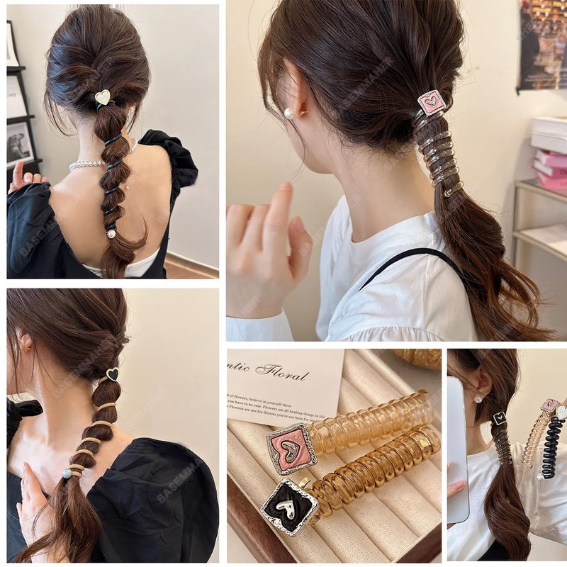 💗 These spiral hair ties phone cord have 4 style, which satisfy girls' favorites. It can not only make hairstyle more tidy, but also decorate her head!