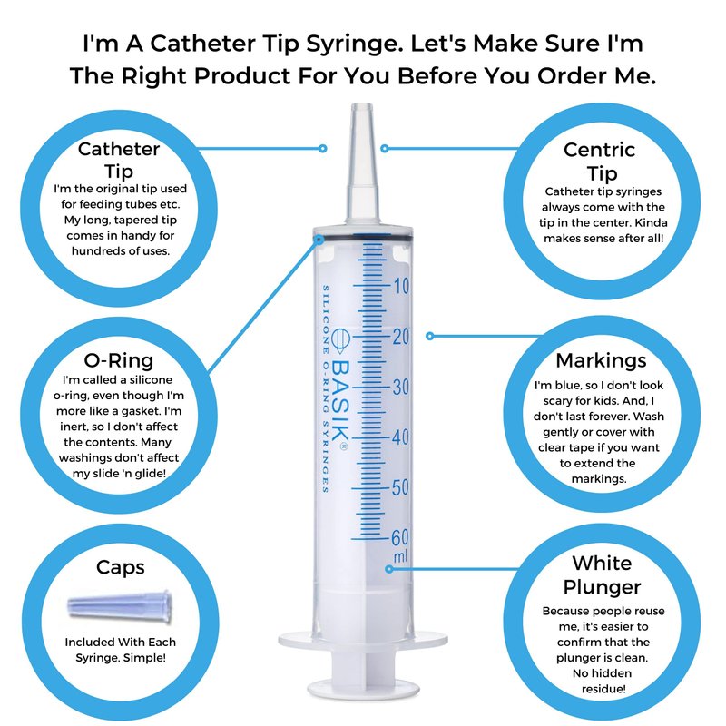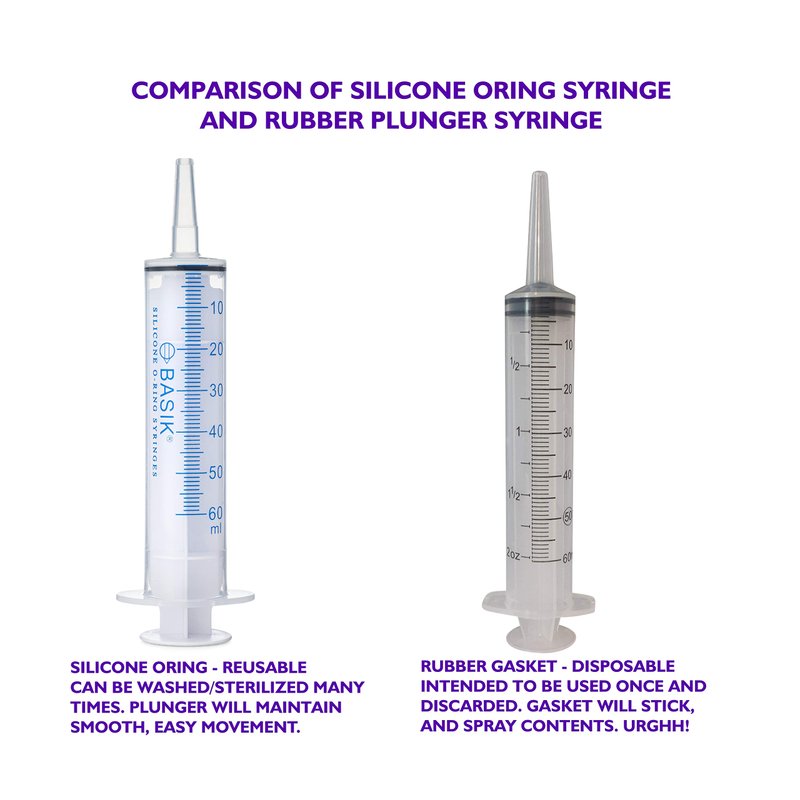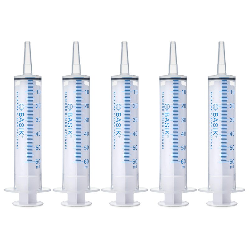 BASIK 60ml | 60cc Cath Tip Silicone O-Ring Syringes | Tube Feeding | Oral Syringe Craft and Garden Multi-Use Syringe 5/Pack