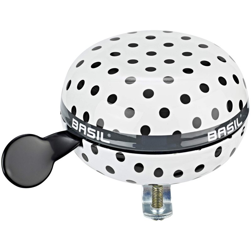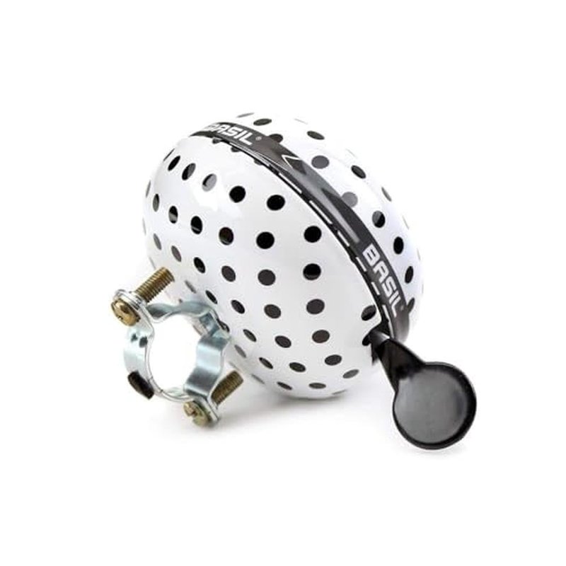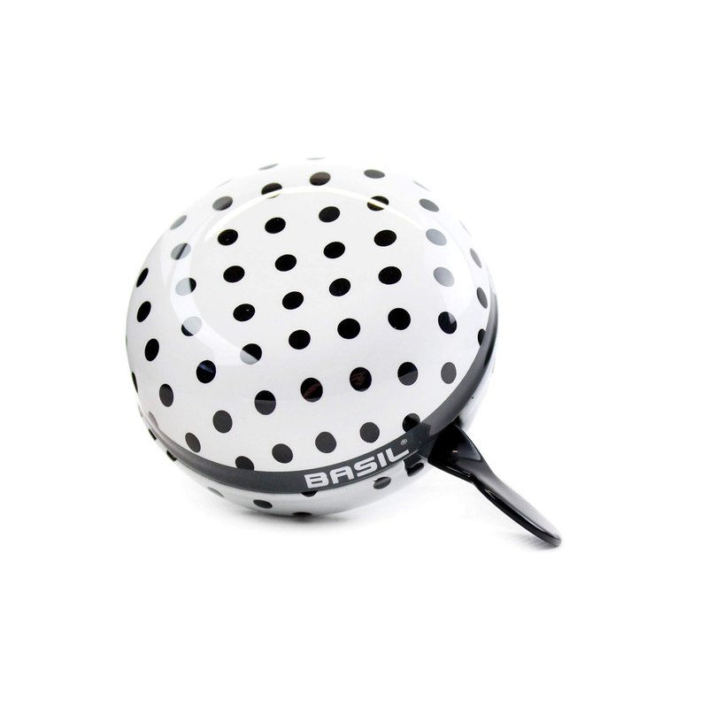 Basil Polkadot Big Bicycle Bell - Ding Dong - 80mm - White With Black Dots