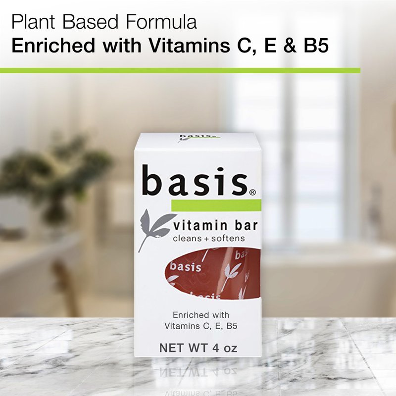 Basis Vitamin Bar Soap - Cleans and Softens with Vitamin C, E, and B5 – Use for Body Wash or Hand Soap – Pack of 6 Bars