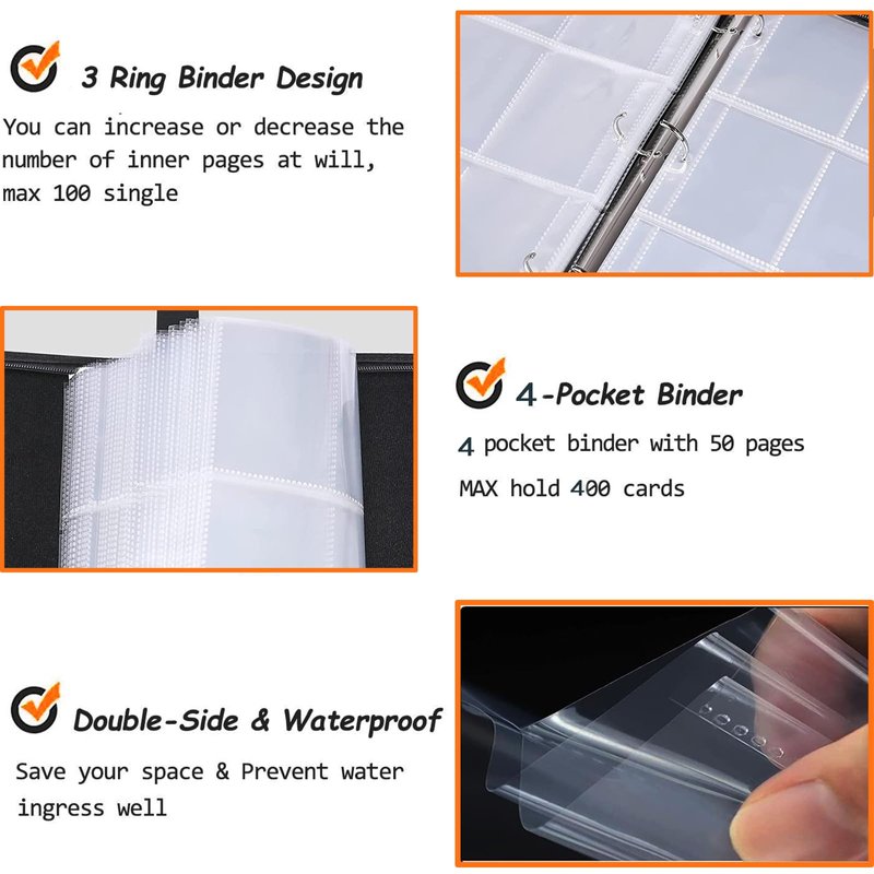 - NEW 2023 Basketball Card Binder: Basketball Card Protector with 400 pockets, 50 Removable Pages, Two-Sides Use Each Page Holds 8 Cards, Completely Holds 400 Pcs of Football & Baseball Sports Cards. Give you plenty of storage for your favorite cards.