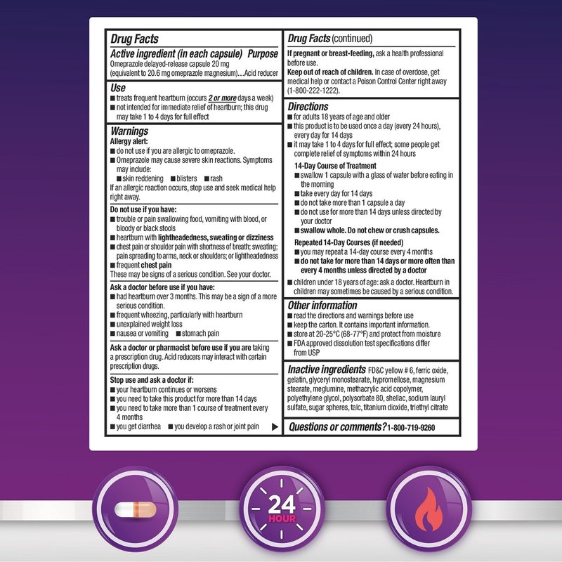 BASKETGOODS Equate Omeprazole | Omeprazole Delayed 20 mg | Heartburn Medicine | Acid Reflux Medicine | 42 Capsules Set with Basket Goods Store