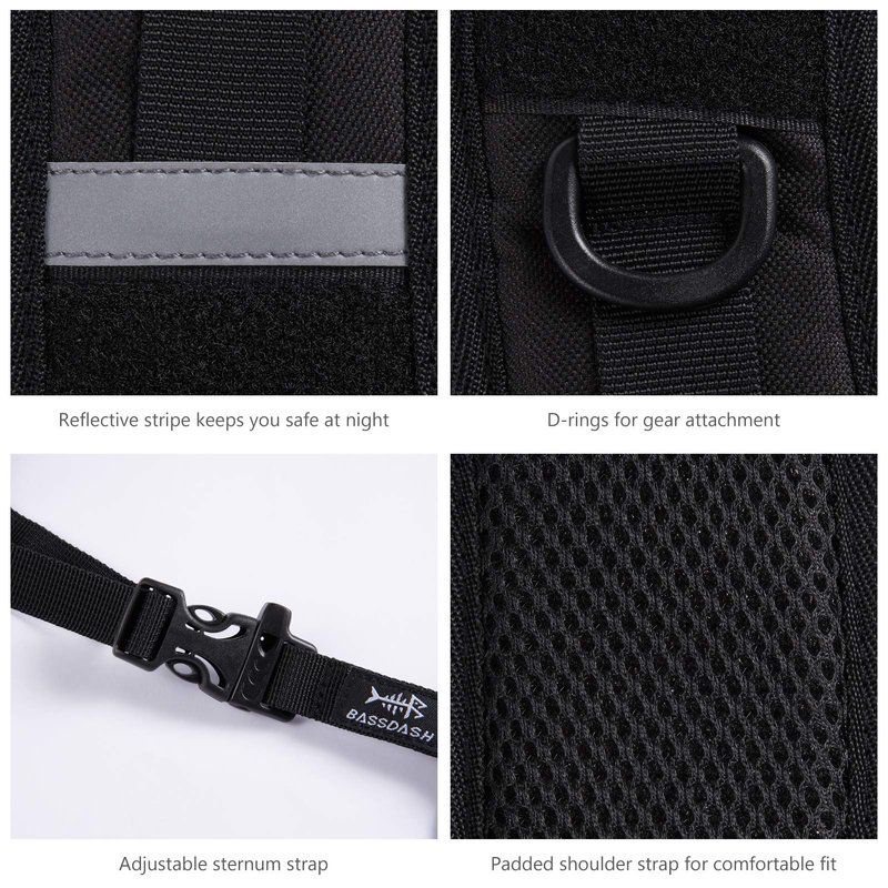 Bassdash padded backpack straps replacement is suitable for most backpacks or dry bags with loops. Built-in sternum strap helps to release your shoulder strain from carrying heavy loads.