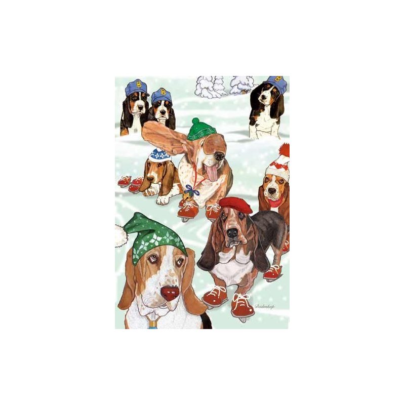Basset Hound Christmas Cards Bassets On Ice : 10 Holiday Cards with White Envelopes - ADORABLE!