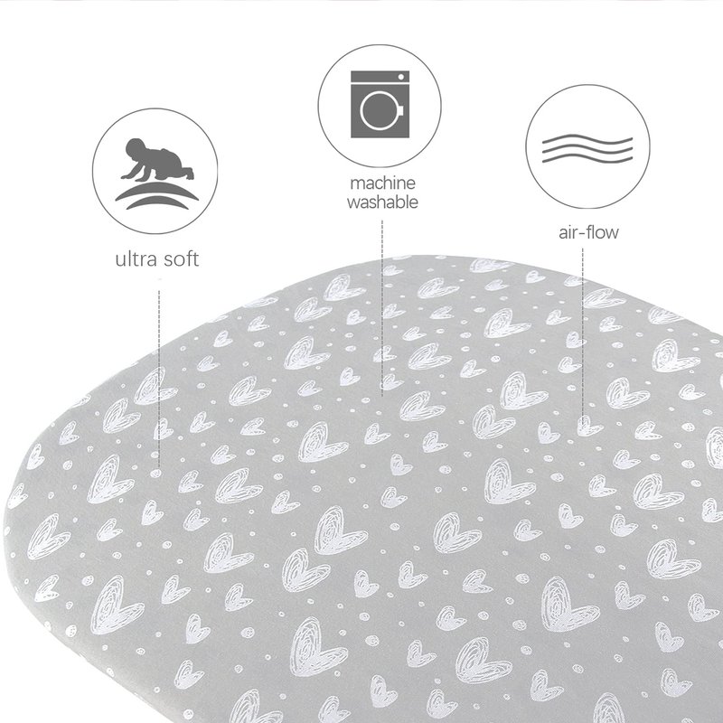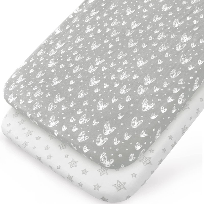 Bassinet Sheets Fit for Most Bedside Sleeper Bassinet & Bedside Crib Mattress, 2 Pack, 100% Jersey Knit Cotton Bassinet & Bedside Sleeper Sheets, Grey Hearts and White Stars Print for Baby