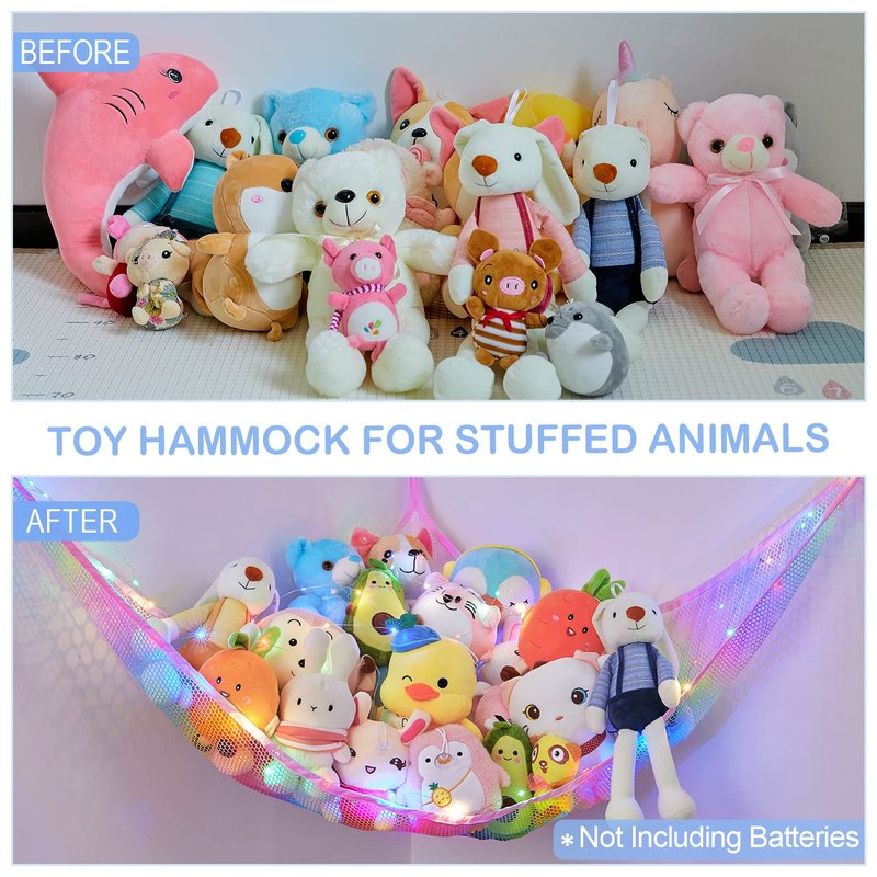 Basumee Stuffed Animals Net or Hammock with LED Light Hanging Toy Net Hammock for Stuffed Animals Storage Stuff Animals Hammocks for Nursery Kids Room with Remote Control, 8 Kinds of Lights(Pack of 1)