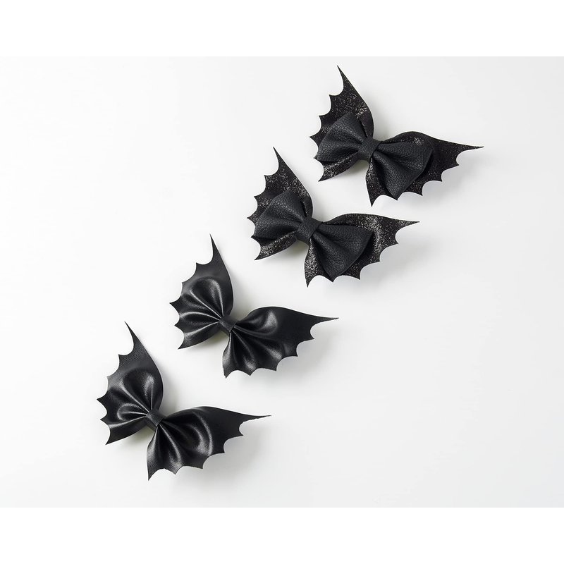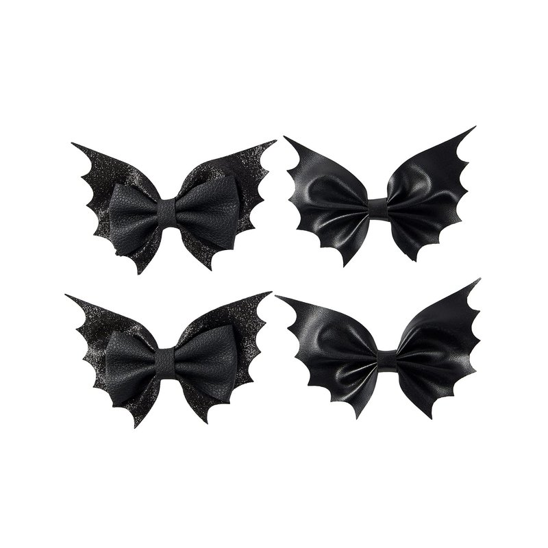 Girls Bat Wings Hair Bow Clips 4pcs Devil Hairpin Halloween Dress Up Accessories 4Inch. Package included: Comes with 4pcs halloween bat wings hair bows, well packaged and suitable for Halloween decorations. Size: Bat hair bow clip measure approx. 4"x 2.7", One size for most teen girls and women. Perfect for Halloween decorations, costume hair accessories, daily wear, christmas cosplay, birthday party, gift.