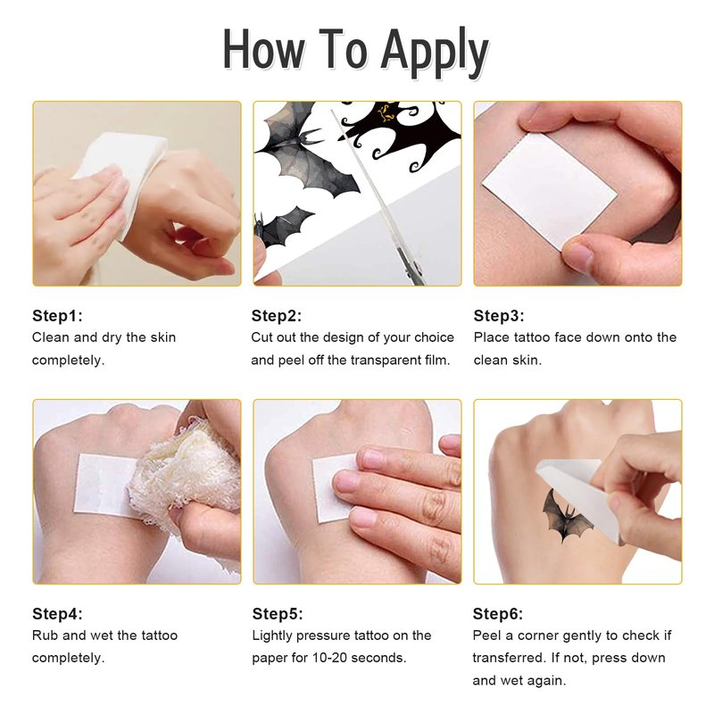 - Easy to Apply and Remove: Choose the pattern you like and then peel off the clear plastic film, place the sheet on skin, dampen with wet cloth and wait a few seconds for it to dry, easily removed by rubbing with body oil or alcohol.