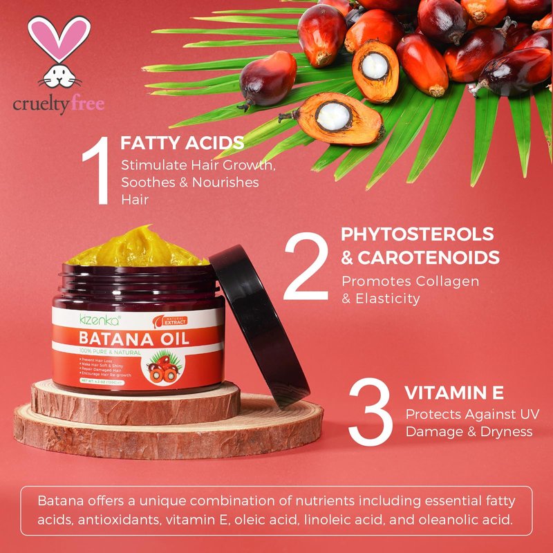 - Natural Batana Oil for Hair Growth - Kizenka Batana Oil is a unique blend of natural ingredients inspired by the hair care traditions of Honduras. It is highly effective in preventing hair loss, promoting hair growth, and achieving smooth, soft hair. This batana oil is excellent to improve hair quality, preventing damage, and fighting dryness