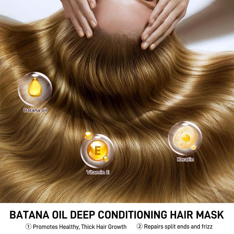 - 【SPA Hair Treatment Oils】——Reveal the secret to shiny hair by incorporating Batana oils into your deep conditioning routine. Rub an appropriate amount of Batana Hair Mask into the palm of your hand, heat it up and massage it into the scalp and hair, allowing the oil to work its magic. 20 minutes later, rinse it off and enjoy a salon-like treatment at home to enhance moisture and nourish your hair.