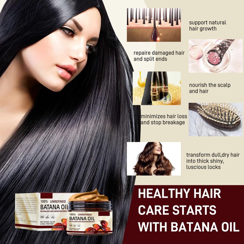 - 【Batana Oil for Hair Growth】——Experience the unadulterated goodness of 100% pure Batana Oil from Honduras. Packed with unrefined goodness and derived from the South American Palm Tree nut, this hair oil provides your hair with essential vitamins for natural nourishment, keeps your hair strong and silky, which reduces problems such as hair loss, split ends and frizzy.