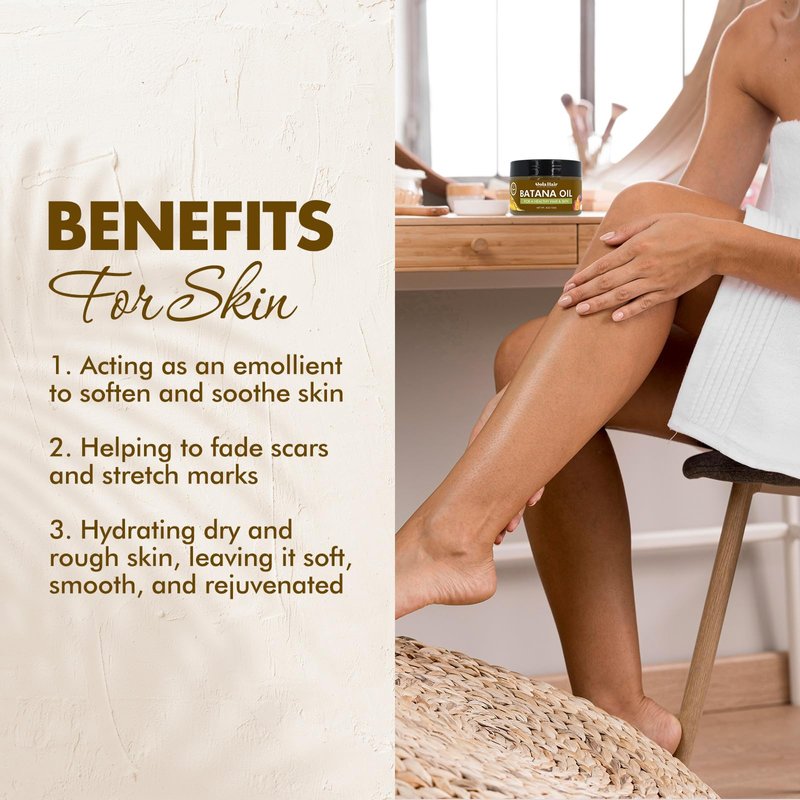- Skin moisturizer: Batana oil deeply conditions and moisturizes the skin, making it particularly beneficial for dry skin types. The fatty acid composition of batana oil helps combat signs of aging, helping to reduce the appearance of fine lines and wrinkles.