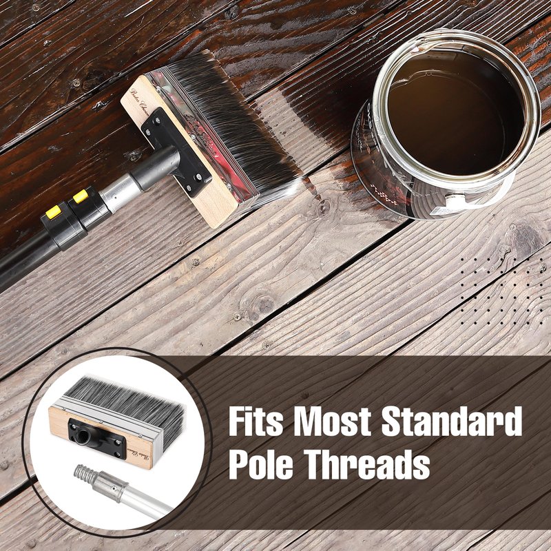 - Bates deck stain brush is crafted with a universal threaded base, enabling easy attachment to most standard extension poles, allowing for enhanced reach and flexibility when working on larger projects. (Note: Handle and pole not included.)
