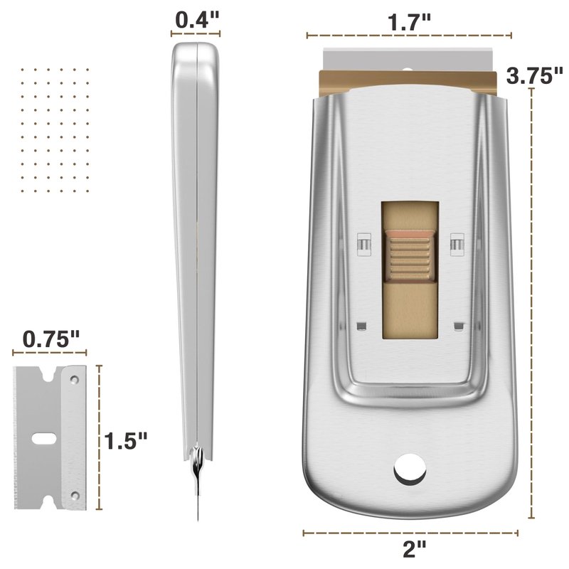 - These razor scrapers excel at removing stickers, adhesives, labels, and glue from various surfaces, including cars, metal, and plastic. Restore surfaces to their original condition without leaving residue or damaging the underlying material.