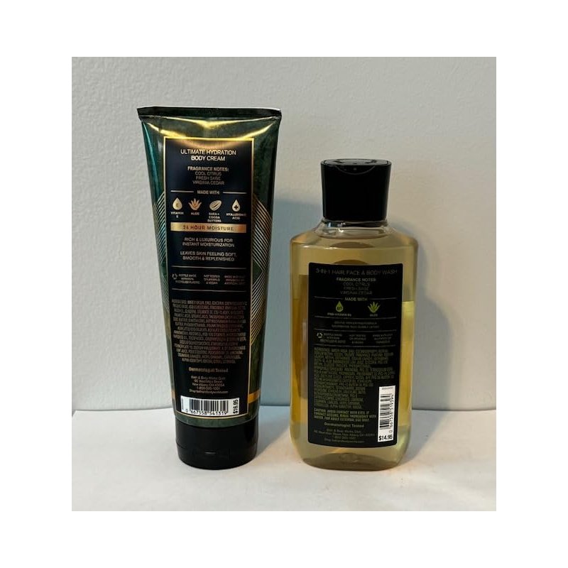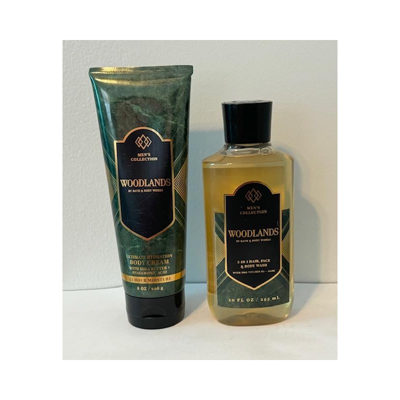 Bath Body Work Men's Collection Woodlands Duo Gift Set - Body Cream and 3 in 1 Hair, Face & Body Wash (Packaging may vary)