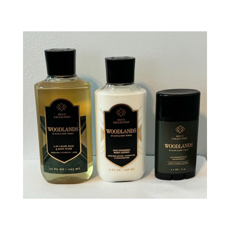 Bath Body Work Men's Collection Woodlands Trio Gift Set - Body Lotion, 3 in 1 Hair, Face & Body Wash, and Antiperspirant Deodorant (Packaging may vary)