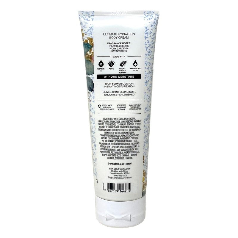 - Bath & Body Works Dressed In White Ultimate Hydration Body Cream Bundle with a 4 oz Marbela Wild Jasmine Bar Soap. (Soap May Vary).