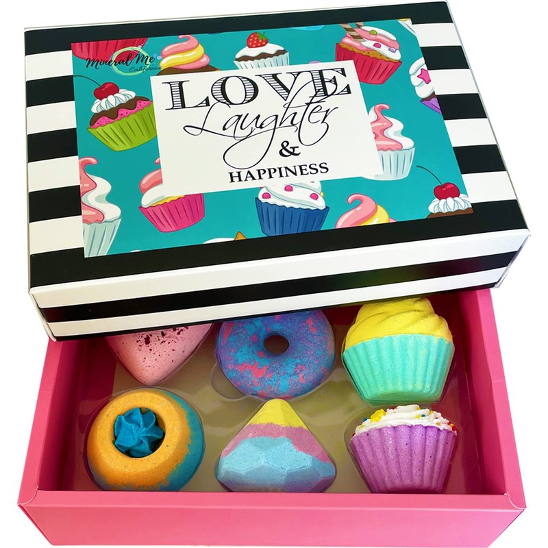 - CUTE DESIGN-This beautiful bath set is crafted with hand-picked sensual scents & Natural oils and comes in cute shapes like cupcake bath bomb, heart, donut bath bombs to give you a surprising bathing experience