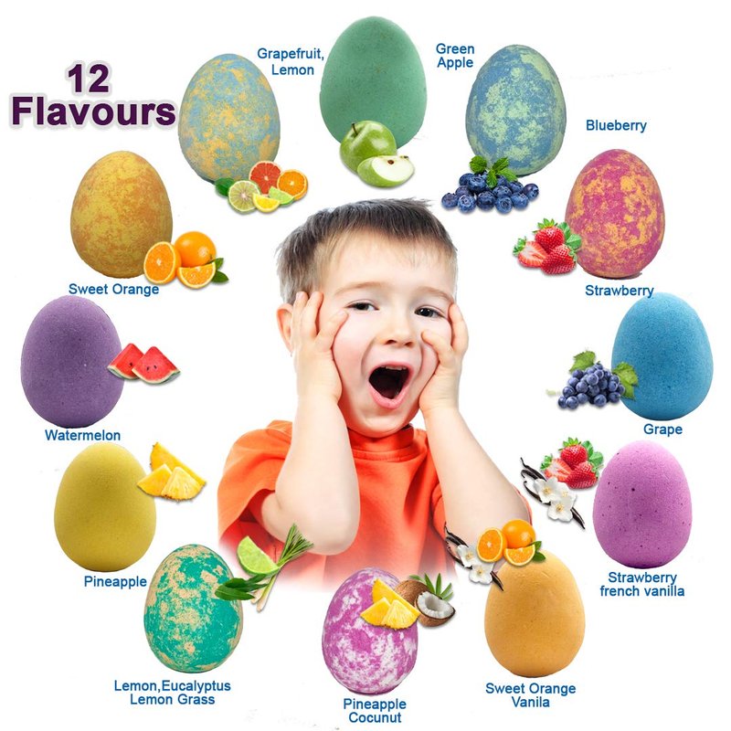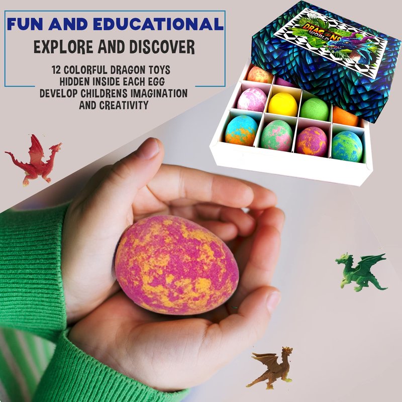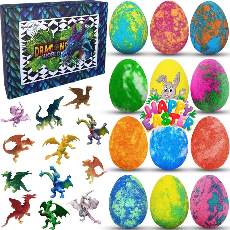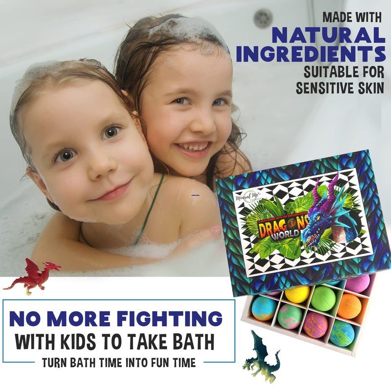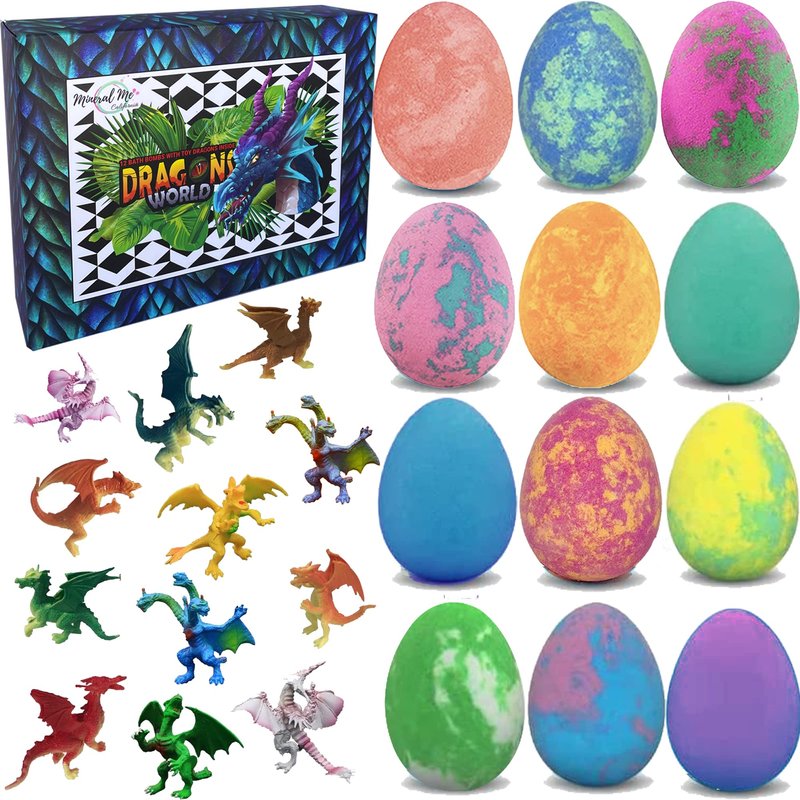 - 12 Colorful Kids Bath Bombs with Dragon Egg Toys . Your kiddo will love the colorful scented water, bubbly foam, and cute little surprise baby dragons inside.