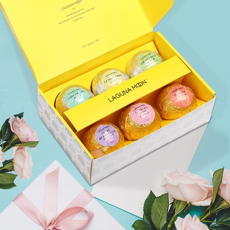 - 6 serene scents: Our handmade bath bombs feature chocolate mint, lemon, rose, orange, lavender & grapefruit scents. They’re individually wrapped and labeled, and presented in an elegant box that makes them perfect for gifting. Containing natural phytochromes instead of artificial dyes, so they won't stain your bathtub or your skin.