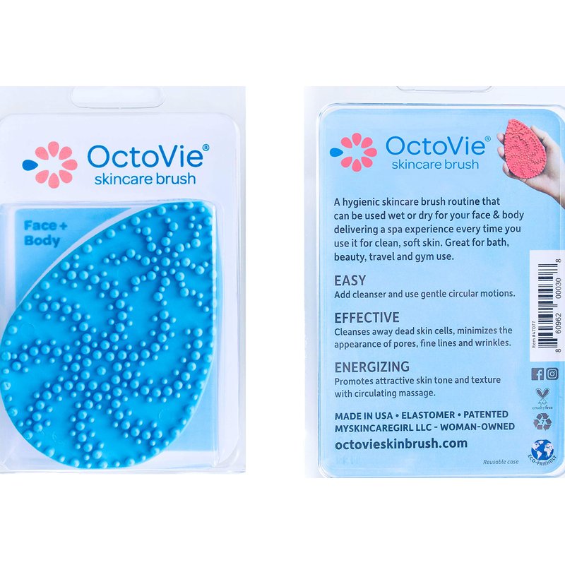 - Use for two minutes twice daily. Apply any cleanser using gentle, upward circular motions. Brush rinses clean with tepid water. Apply your favorite moisturizer or serum, use nubs to deliver ingredients into your skin vs. fingertips absorbing all that goodness. Works great for applying foundation while plumping, minimizing dry skin, finish blending with makeup sponge. Quick tip: Makeup artist use OctoVie to cleanse their makeup brushes like fluffy, new again. A must try!