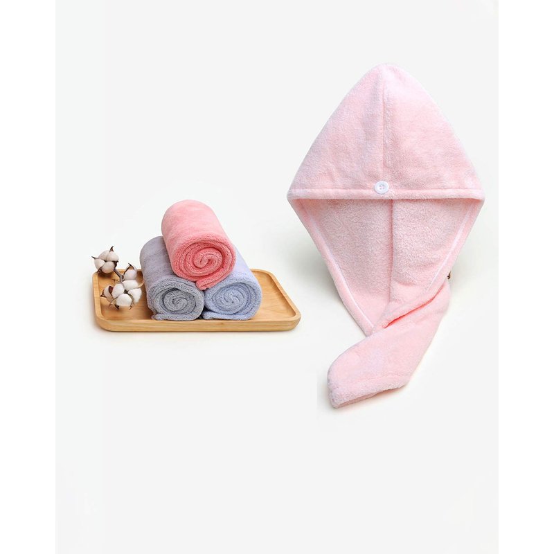 Bath Pre Dry Hair Towel 4-Piece Set Quick Dry Extra Absorbent Lightweight Turban with Button Hair Drying Wrap Bathroom Girl Friend Family Mom Gift