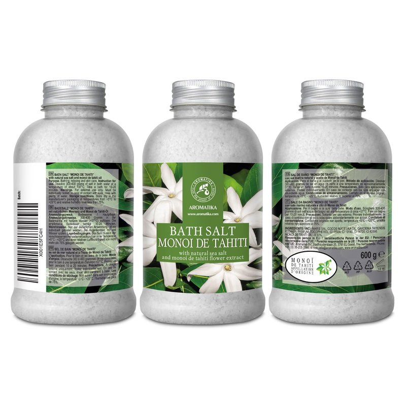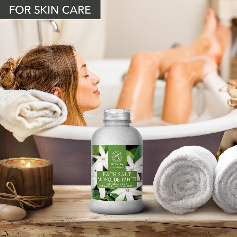 Bath Sea Salt Monoi de Tahiti 21.16 Oz (600g) - Bath Salts with Coconut Essential Oil and Gardenia Flowers Extract for Bath Soak - Relaxing Bath - Good Sleep - Aromatherapy - Sea Salt Bath