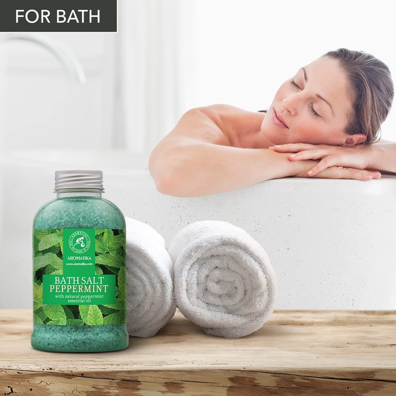 Bath Sea Salt Peppermint 21.16 Oz (600g) - Bath Salts with Peppermint Essential Oil for Bath Soak - Relaxing Bath - Body Care - Muscle Relaxation - Aromatherapy Bath Salts - Mint Bath Salt