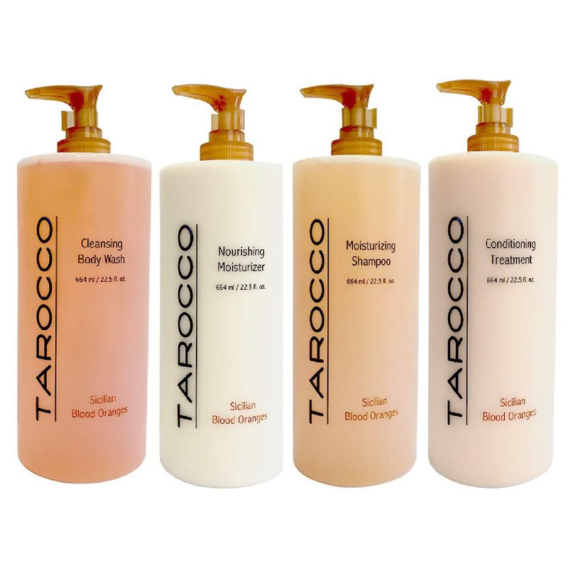 Tarocco 22.5 oz bath and body set. Features the following 4 products: -Tarocco Nourishing Moisturizer -Tarocco Cleansing Body Wash -Tarocco Moisturizing Shampoo Tarocco Conditioning Treatment