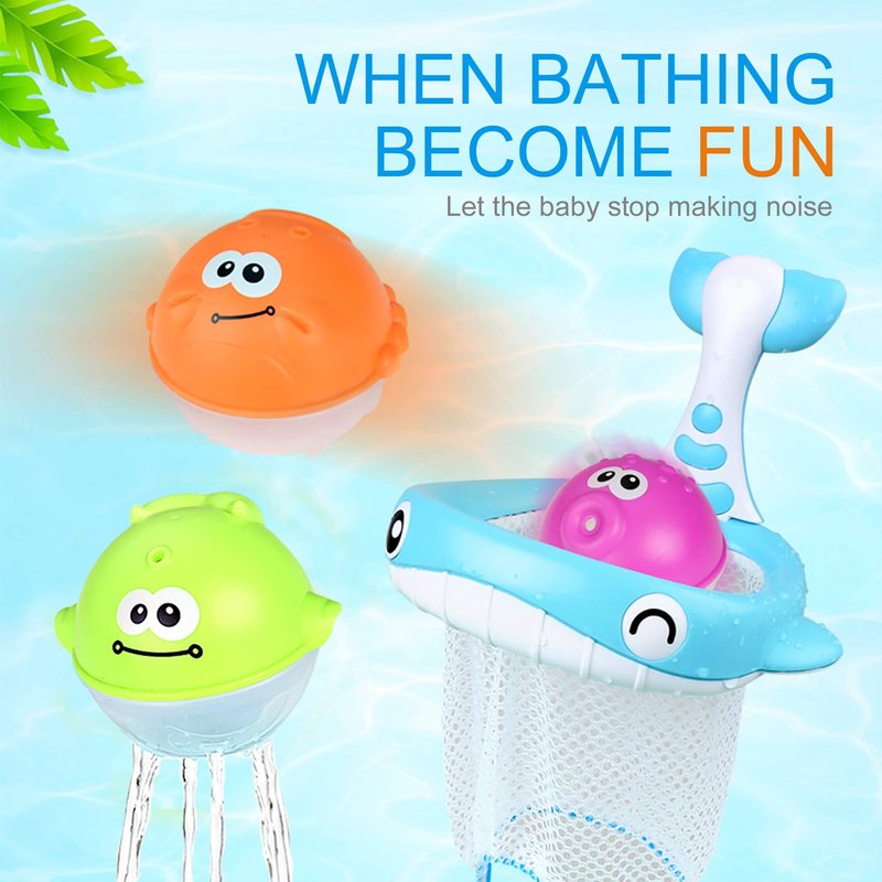 - Kids scoops up the cute ocean animal (whale, crab, octopus) floating in their bath with fishing net. Just sink the animal balls into water and take them out, these lovely animal balls can squirt water like real marine life.