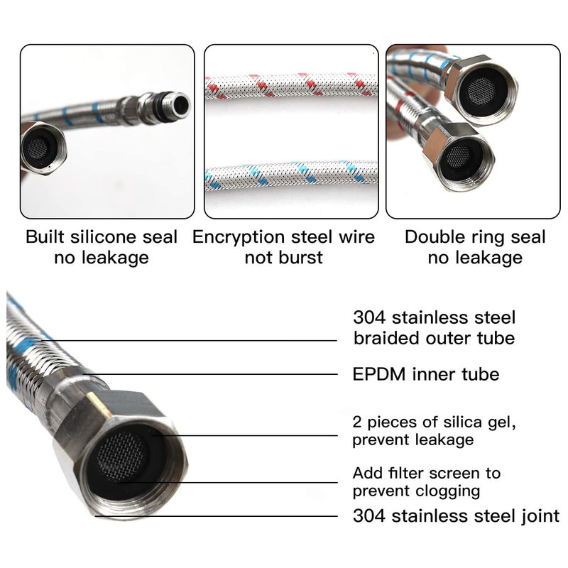 - STAINLESS STEEL EXTERIOR : Stainless steel braided exterior ensuring quality and durability, rust-proof, burst-proof and anti-corrosion, protecting inner tube and preventing leakage.