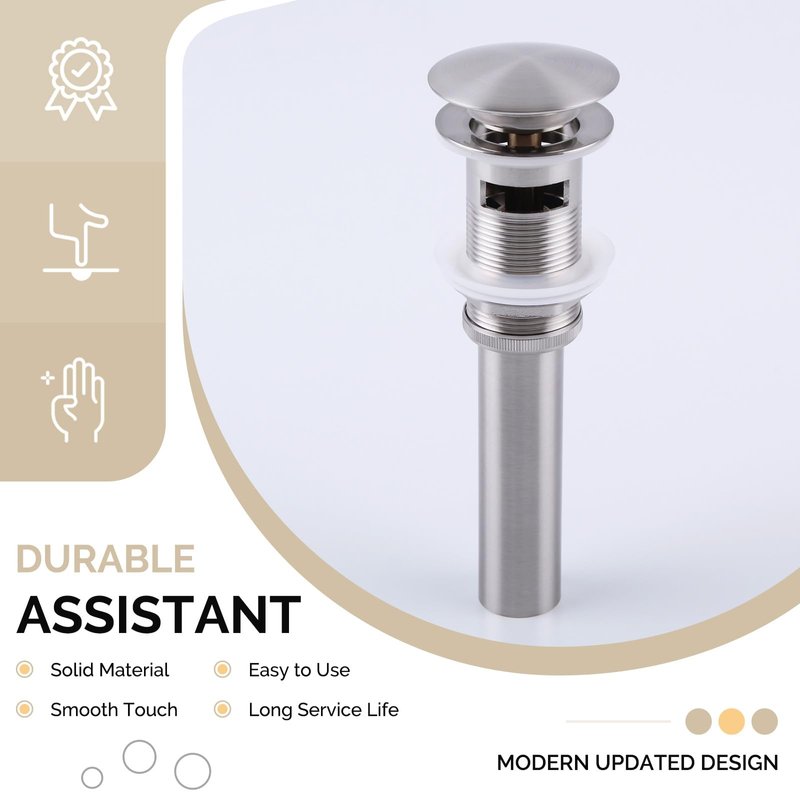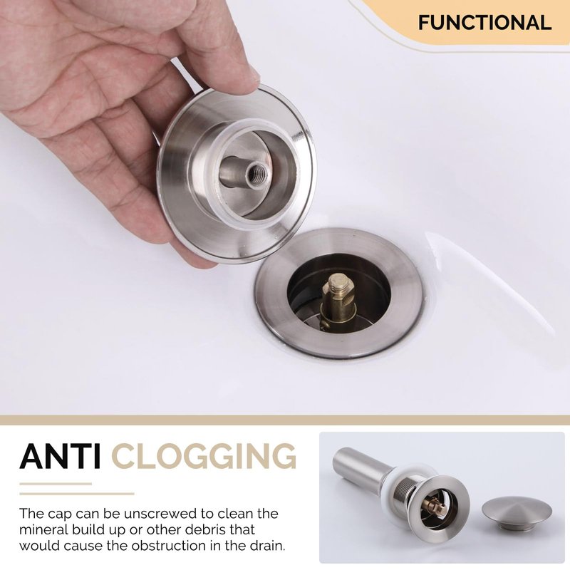 - SOLID AND PREMIUM CONSTRUCION: made of brass stopper with stainless steel tailpiece for durability, premium brushed finish, resist rust, corrosion and tarnish.