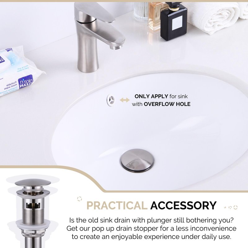 - STANDARD SIZE FITS MOST SINKS: apply to standard bathroom undermount sinks or vessel sinks that HAVE OVERFLOW, drain hole diameter required: 1-5/8" to 2", diameter of the top flange is 2-5/8".