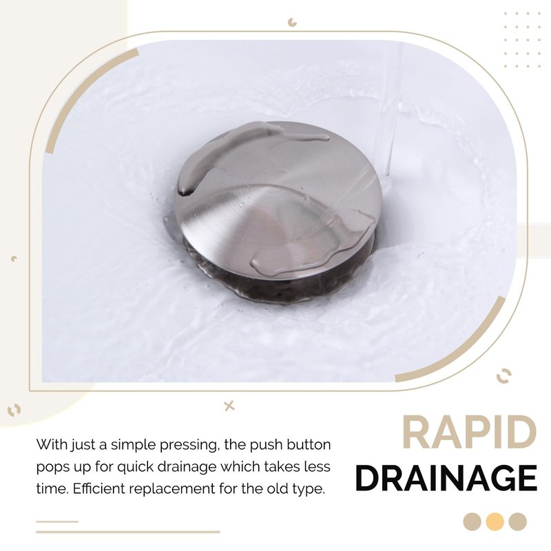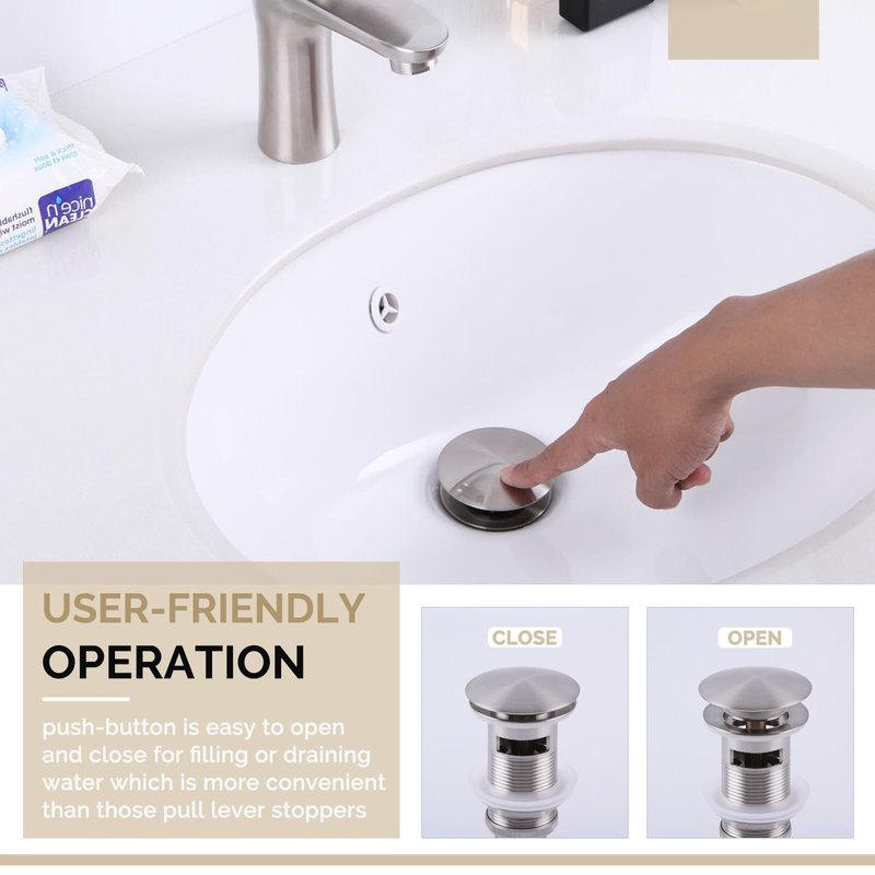 - CONVENIENT ALTERNATIVE: functional replacement sink drain for the traditional pull mechanism, simply press the stopper to seal or drain the water.