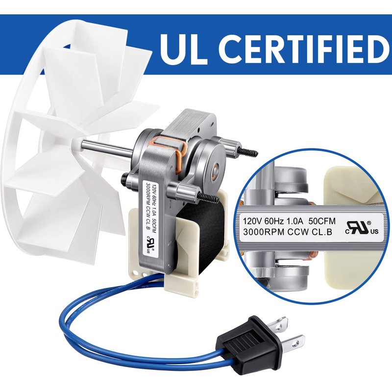 - UL certification: the bathroom vent fan motor replacement equipped motor and plug with fan blade, stable and practical, continuous duty, air over