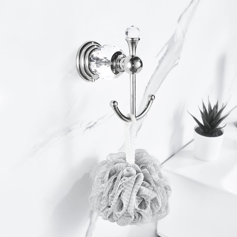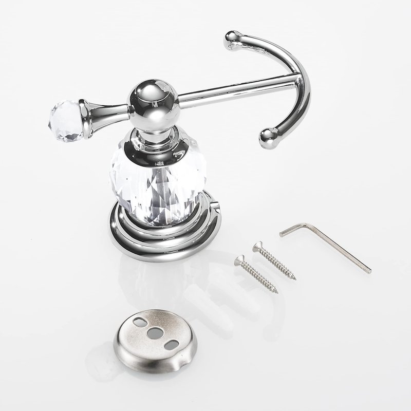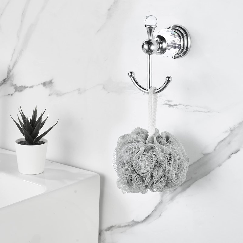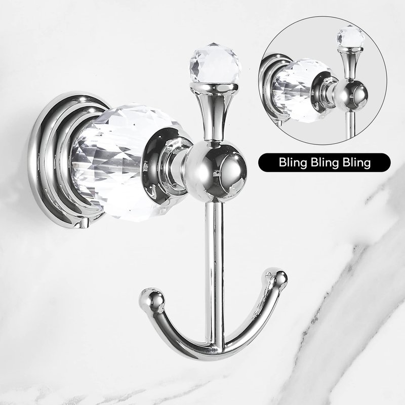 BATHSIR Crystal Robe Hook, Chrome Towel Hook for Bathroom Wall Mounted Silver Double Coat Hook
