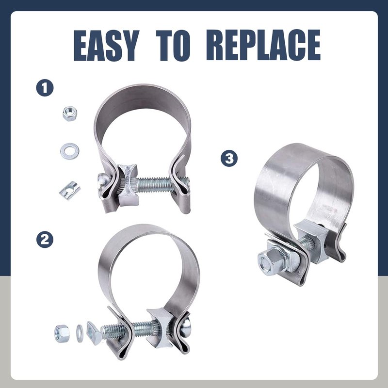 - ✅【Universal Fitment】Exhaust pipe clamp is a simple and effective way to connect heavy exhaust system components . The narrow band clip can be used for catalytic converters, exhaust nozzles, exhaust manifolds, exhaust resonators, exhaust flexible pipes, and exhaust muffler repair projects.