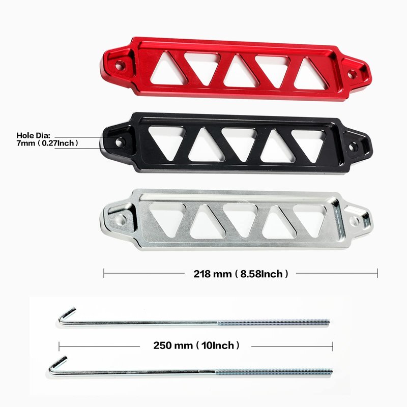 - [Size] The total length of the battery fastening bracket is 218 mm (8.58 "), the distance between the bolt centers is 190 mm (7.48"), and the bolt length is 250 mm (10 "). Please measure the diameter of the primary battery before purchasing to avoid purchasing products with incorrect size.