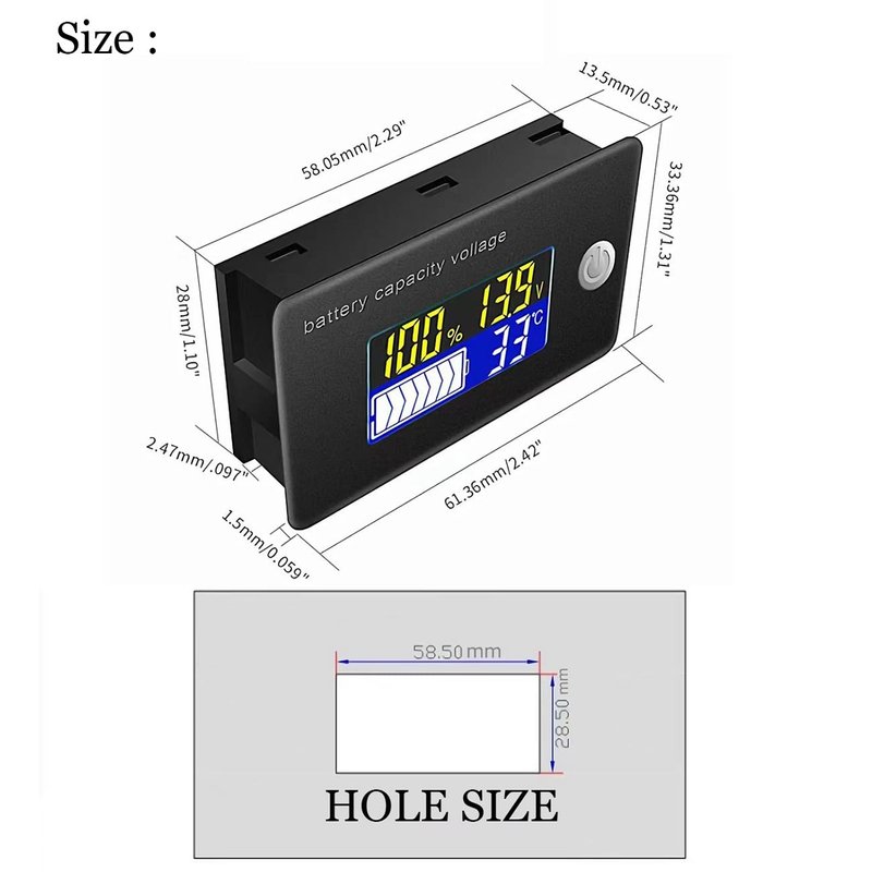- Multifunction:Battery monitor can show the battery capacity & voltage and Celsius temperature/ Fahrenheit,you can easily control your batteries