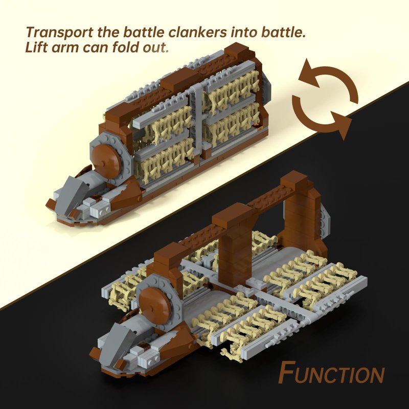 - Set Includes: Our troop carrier can hold 32 battle soldiers with weapons, 2 droideka, you can easily drive it around and deploy of soldiers.