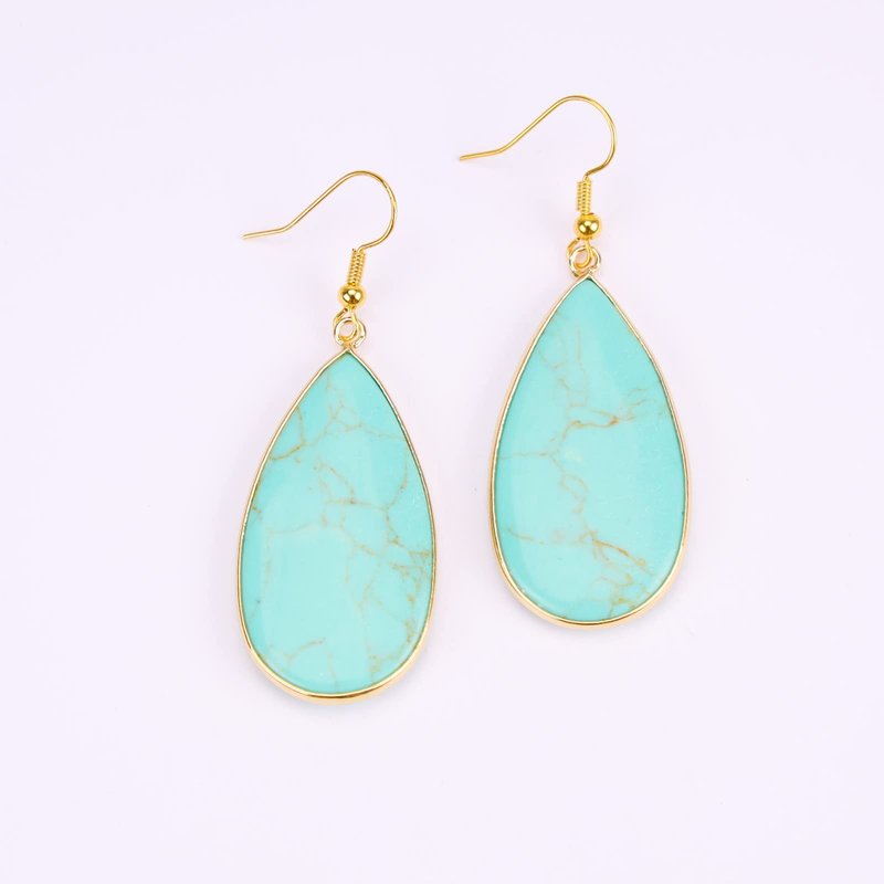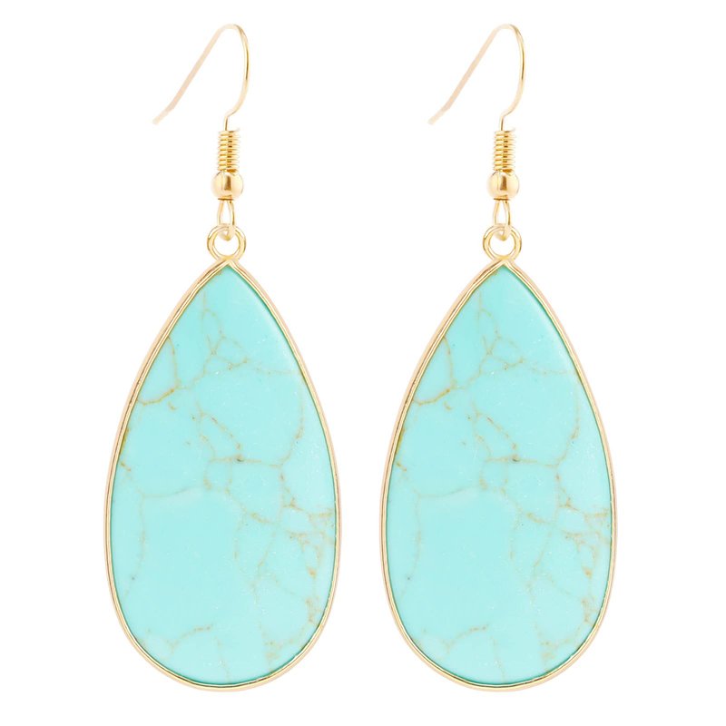 BaubleStar Natural Crystal Healing Birth Stone Statement Drop Earrings Turquoise Teardrop Quartz Dangle Gold Fashion Jewelry for Women Girls