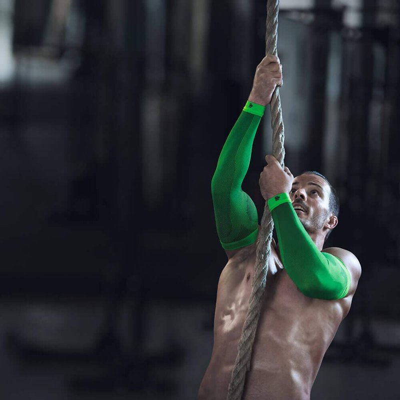 - SUPPORTS THE ARM MUSCLES: The Sports Compression Arm Sleeve supports the arm muscles with a comfortable gradient compression. The compressive effect decreases from wrist to upper arm, promoting circulation. The muscles receive a better supply of oxygen, for optimal performance.