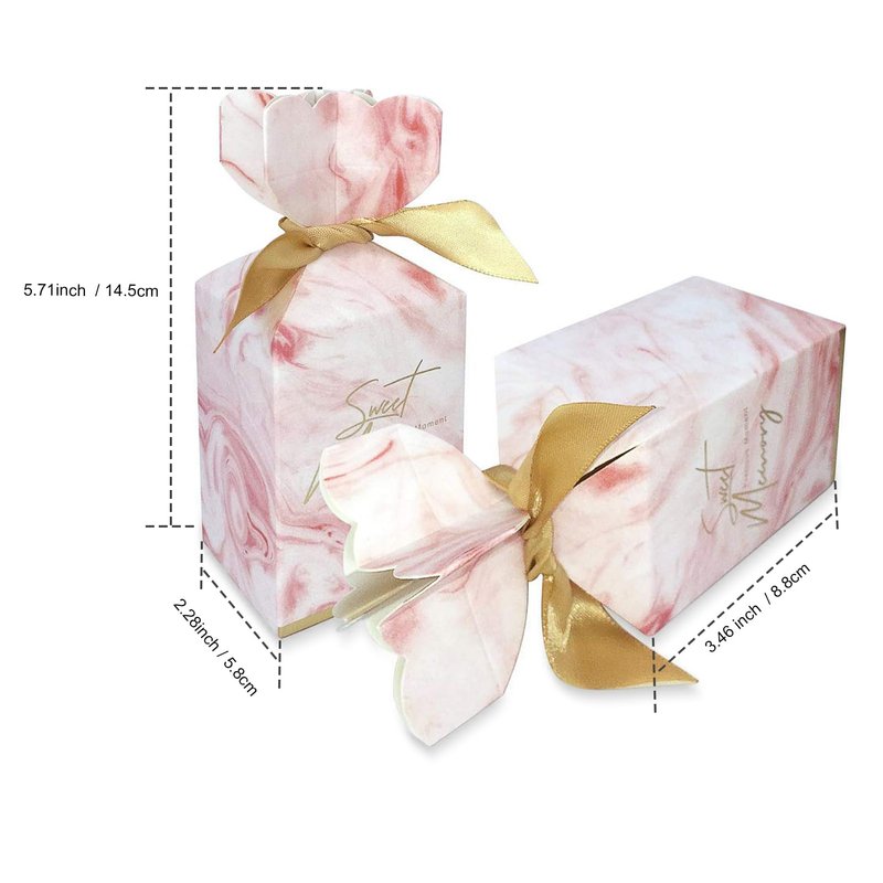 - Design of vase shape,one of side is printed with "Thank you".Each box comes with a light pink ribbon,you can tie a cross or bowknot,make it more romantic