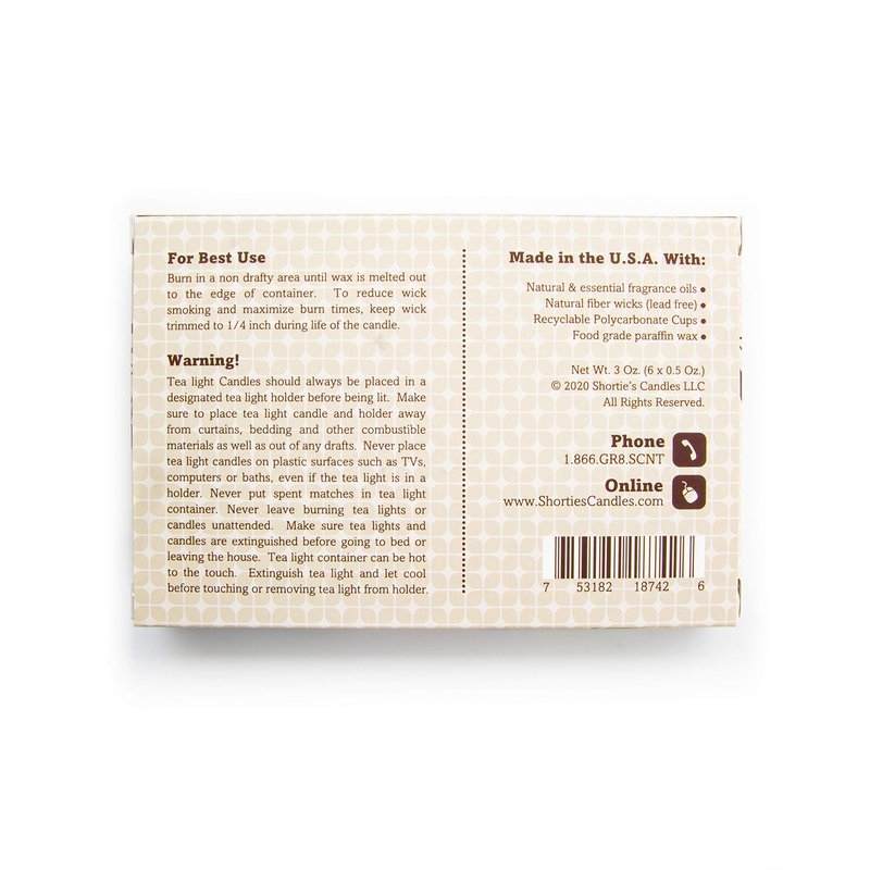 - Each pack contains 6 Tea Light Candles 1.5 inches in diameter, each with 1/2 Oz. of wax, and burn for approximately 5 hours per tea-light.