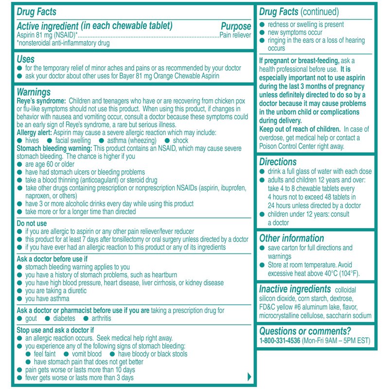 Bayer Aspirin Regimen 81mg Chewable Tablets | #1 Doctor Recommended Aspirin Brand | Pain Reliever | Orange Flavor | 108 Count, 36 Count (Pack of 3)