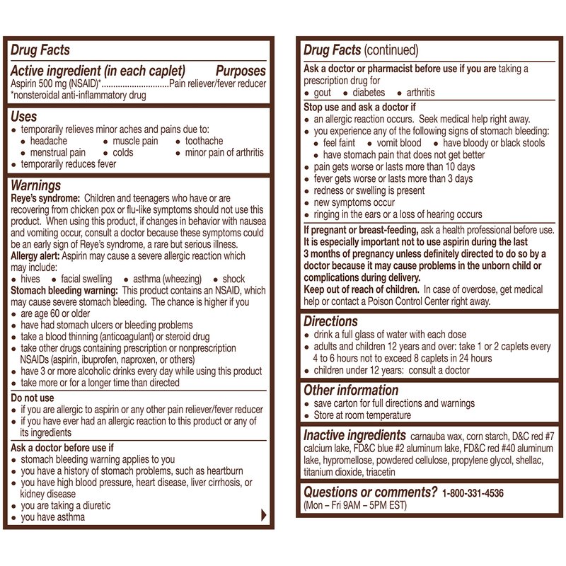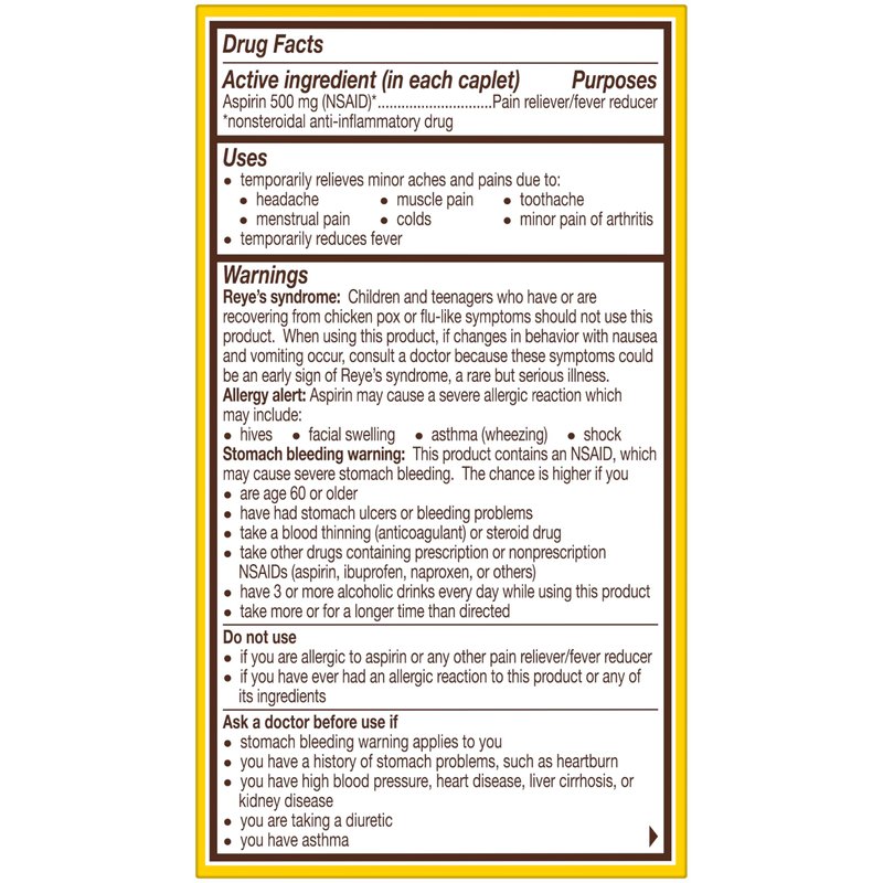 Bayer Extra Strength Aspirin 500 mg, Pain Reliever and Fever Reducer, Head, Muscle, Minor Arthritis, Back, Tooth, and Menstrual Pain, 100 Coated Tablets