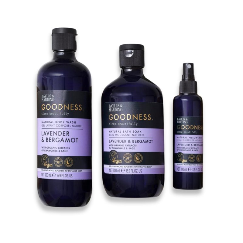 - LUXURIOUS BATH & SLEEP SET: Baylis & Harding’s lavender & bergamot natural body wash & soak is the perfect addition to your bath routine. Simply spray the lavendar pillow mist onto your pillow and you're set for your best nights sleep yet. The lavender scent is crafted to help you enjoy a tranquil night’s sleep. We include a simple but elegant bottle design that is inspired by the elements in our products. This will leave you feeling better than ever!