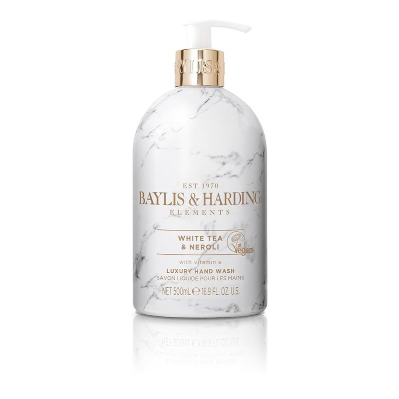 Baylis & Harding Liquid Hand Soap Wash with Dispenser, Elements, White Tea & Neroli, 16.9oz/500ml