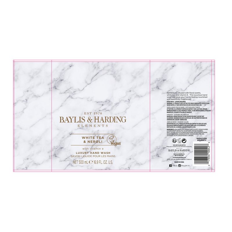 Baylis and Harding. We develop all our formulations with great care to ensure they are safe to use and provide a great consumer experience. We continuously review all our formulations to ensure compliance with regulatory requirements and to reflect consumer preferences. We have developed all our products to use alternative preservative systems and we can confirm that our products are paraben free. Developed and designed to provide an affordable and luxury experience. We are conscious of the negative impact that packaging has on the environment. We have adopted the principles supported by the Plastic Pact 2018. Inspired with body in mind with Organic extracts and 98% naturally derived ingredients. Our bottle are 100% PCR with Recyclable pumps and caps.
