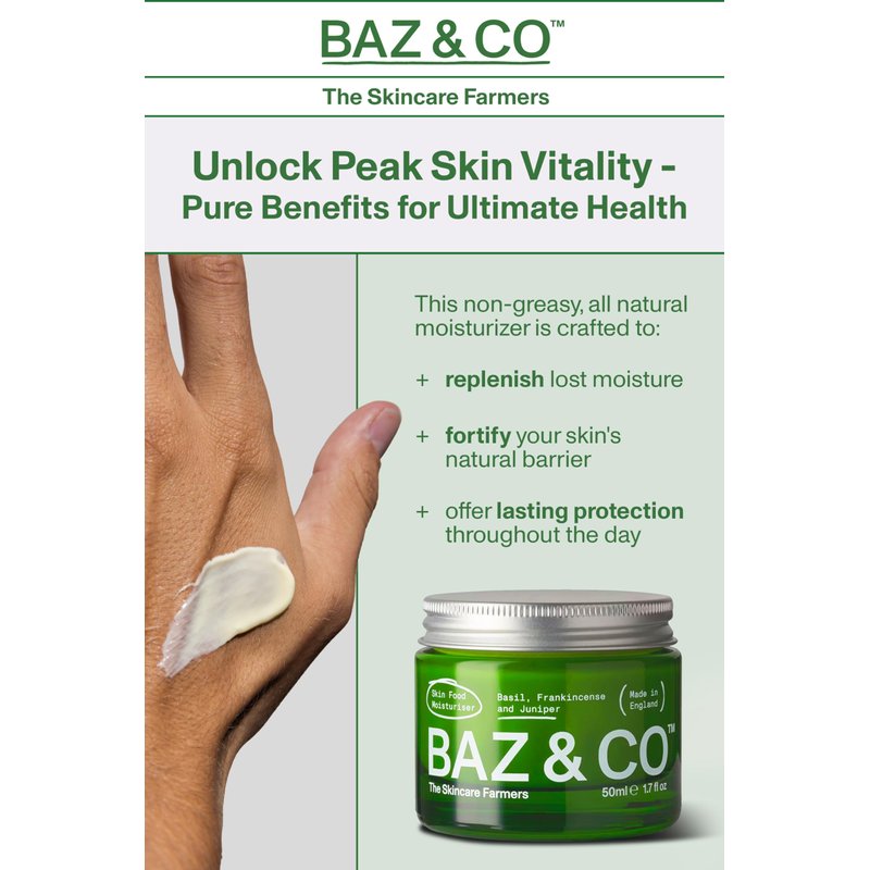 BAZ & CO Skin Food Moisturizer Face Cream for Men 1.7 Fl Oz with Basil, Frankincense and Juniper